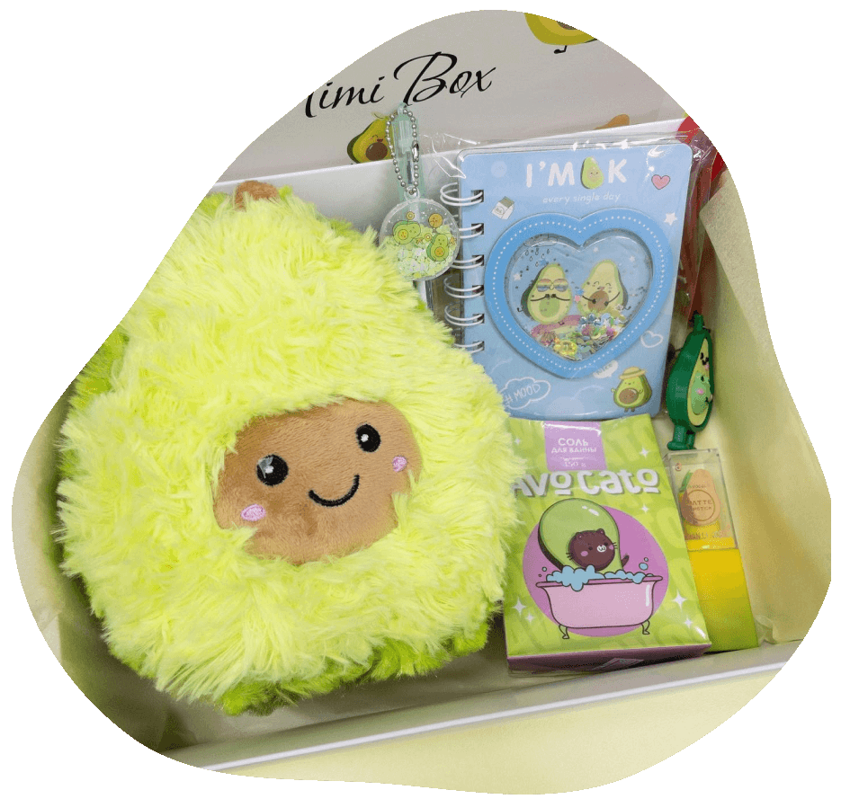 В наборах «Авокадо» и «Green Avocado» счастливые обладатели обнаружат коврик для мышки, мягкую игрушку, брелок и еще много всяких привлекательных вещичек. К каждому готовому комплекту прилагается красивый пакет и открытка, которую можно подписать.