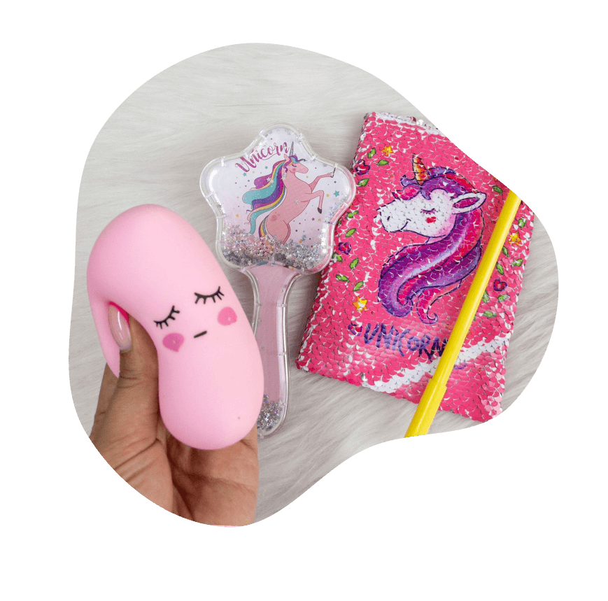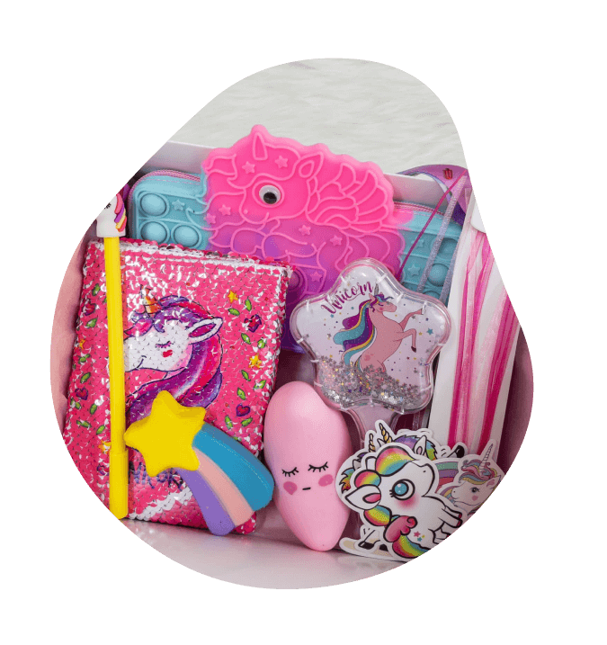 Подарочные боксы Единорог в Астане от «MIMIBOX» представлены в двух вариантах. Набор "Единорог" объединил в себе романтичную гелевую сумочку, розовый сквиш, игрушку-антистресс, расческу, прядку для волос и канцелярские принадлежности. Образ единорога обыгран в каждом предмете. Его грива окрашена во все цвета радуги, глаза то широко распахнуты, то мечтательно прикрыты. Профиль загадочного существа украшает кончик карандаша, а вся фигурка «скачет» на стикерах и других предметах бокса.